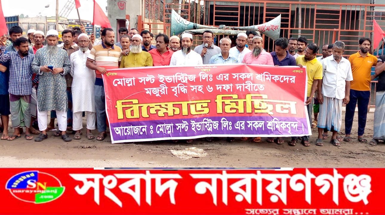 সংবাদ নারায়ণগঞ্জ:-৮ম দিনে গড়িয়েছে মোল্লা সল্ট ইন্ডাস্ট্রিজ লিমিটেড শ্রমিকদের বিক্ষোভ মিছিল। যতদিন পর্যন্ত ৬ দফা দাবি আদায়ে না হবে ততদিন পর্যন্ত আমরা বিক্ষোভ চালিয়ে যাওয়ার হুঁশিয়ারি শ্রমিক নেতাদের।