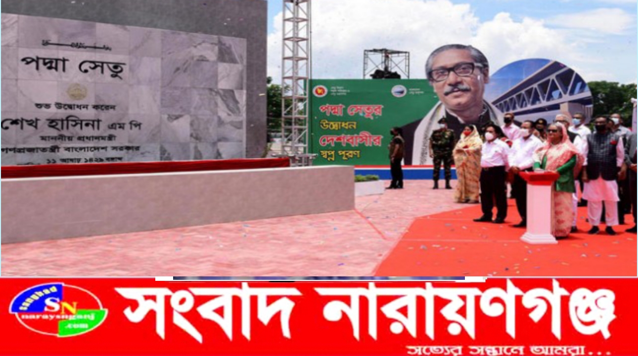 সংবাদ নারায়ণগঞ্জ:- অপেক্ষার অবসান। পদ্মা পেল নতুন পথ। (২৫ জুন) শনিবার বেলা ১১টা ৪৮ মিনিটে মাওয়া প্রান্তে টোল দিয়ে ১১টা ৫৫ মিনিটে মোনাজাতের পর ১১টা ৫৮ মিনিটে ফলক উন্মোচনের মাধ্যমে ৬.১৫ কিলোমিটার সেতুপথের সূচনা করেন প্রধানমন্ত্রী শেখ হাসিনা।