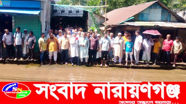 সংবাদ নারায়ণগঞ্জ:- ফতুল্লা স্টেশনের পূর্ব পাশের জলাবদ্ধতা নিরসনের দাবিতে প্রতিবাদ সমাবেশ করেছে স্থানীয় ভুক্তভোগী মহল। শনিবার দুপুরের ফতুল্লা ইউনিয়ন পরিষদের ১ নং ওয়ার্ড এলাকায় এই প্রতিবাদ সমাবেশ ও মানববন্ধন অনুষ্ঠিত