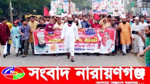 সংবাদ নারায়ণগঞ্জ:- জাতির পিতা বঙ্গবন্ধু শেখ মুজিবুর রহমানের জ্যেষ্ঠ কন্যা, আওয়ামী লীগ সভাপতি ও প্রধানমন্ত্রী শেখ হাসিনার ৭৬তম জন্মদিন। এ উপলক্ষে সমাবেশ ও বর্ণাঢ্য র‍্যালি করেছে জাতীয় শ্রমিক লীগ ফতুল্লা