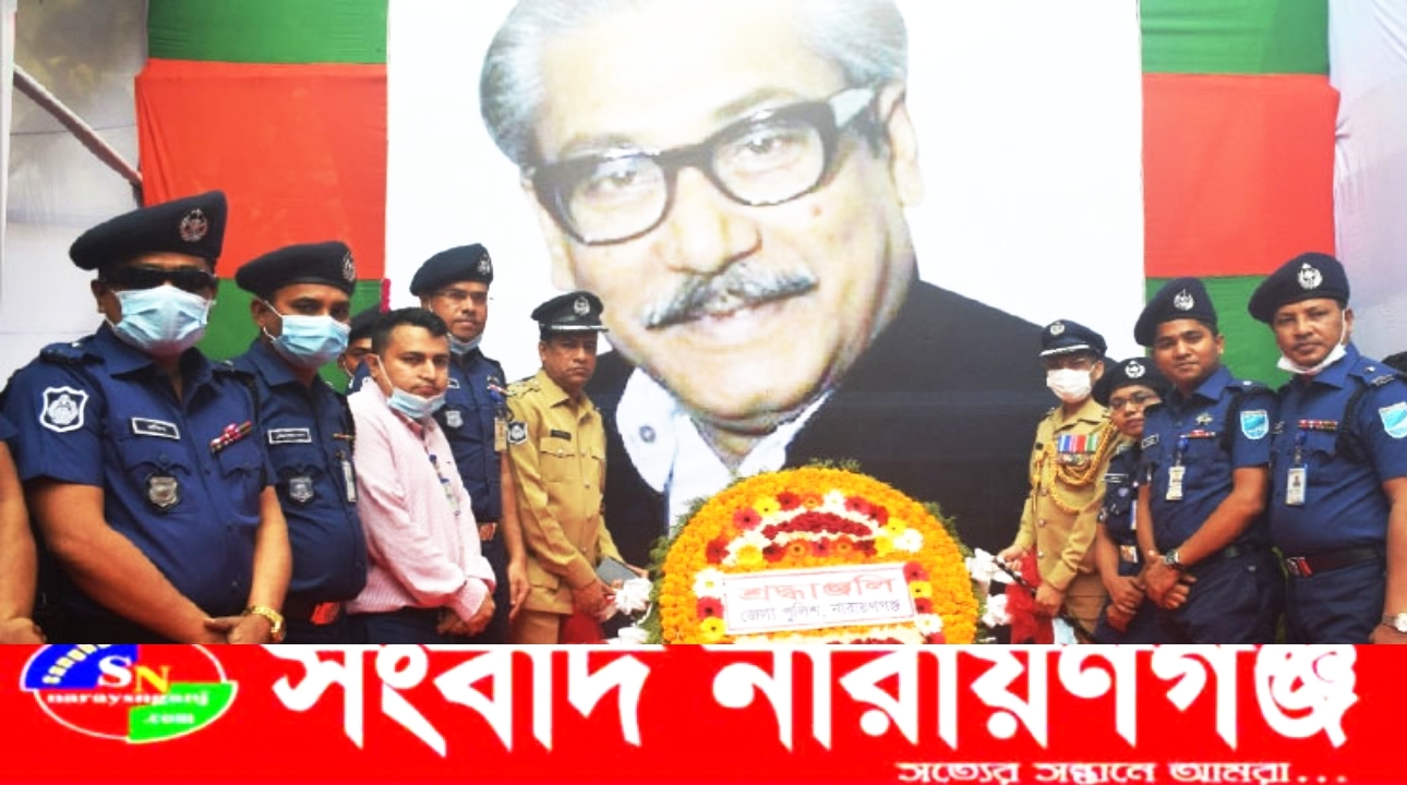 সংবাদ নারায়ণগঞ্জ:- জাতির পিতা বঙ্গবন্ধু শেখ মুজিবুর রহমানের ১০২তম জন্মবার্ষিকী এবং জাতীয় শিশু দিবস উপলক্ষে, বঙ্গবন্ধুর প্রতিকৃতিতে ফুল দিয়ে বিনম্র শ্রদ্ধা জানিয়েছেন পুলিশ সুপার (এসপি) মোহাম্মদ জায়েদুল আলম। (১৭ মার্চ)